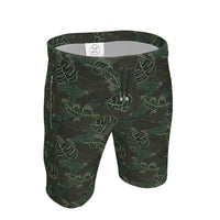 Men's Gym Shorts - Camo Leaves - Dark Green