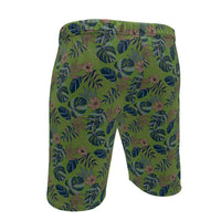 Men's Gym Shorts - Midnight Monstera - Olive Green