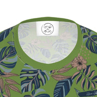 Men's Athletic V-Neck T-Shirt - Midnight Monstera - Olive Green