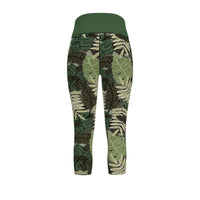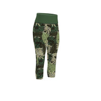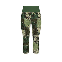 Women’s High-Waist Sports Leggings - Camo Leaves - Light Green