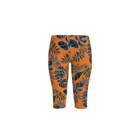 Women's Mid-Rise 3/4 Length Leggings - Midnight Monstera - Cadmium Orange