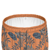 Women's Athletic Shorts - Midnight Monstera - Cadmium Orange