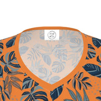 Women's Athletic V-Neck T-Shirt - Midnight Monstera - Cadmium Orange