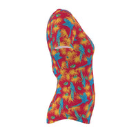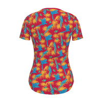 Women's Athletic V-Neck T-Shirt - Tropical Macaw - Raspberry Red