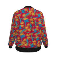 Women's Bomber Jacket - Tropical Macaw - Raspberry Red