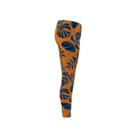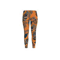Women's Mid-Rise Full-Length Leggings - Midnight Monstera - Cadmium Orange