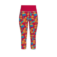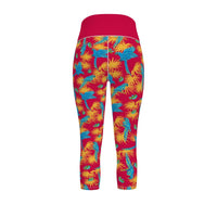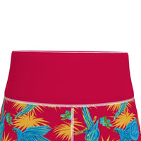 Women's High-Waist Sports Leggings -Tropical Macaw - Raspberry Red