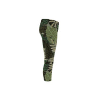 Women's Mid-Rise Capri Leggings - Camo Leaves - Light Green