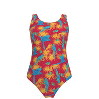 Women's One-Piece Swimsuit - Tropical Macaw - Raspberry Red