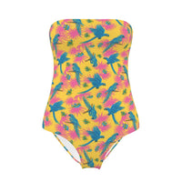 Women's Strapless Swimsuit - Tropical Macaw - Yellow