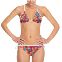 Women's String Bikini - Tropical Macaw - Raspberry Red