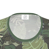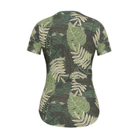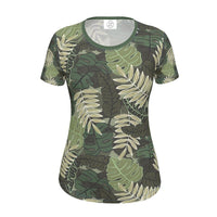 Women's Athletic Crew Neck T-Shirt - Slim Fit - Camo Leaves - Light Green